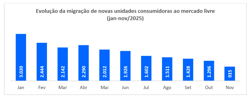 Na reta final de 2025, o ritmo das migrações ao mercado livre de energia segue intenso. De janeiro a novembro, a Câmara de Comercialização de Energia Elétrica – CCEE já registrou a entrada de 20.586 novos consumidores para o ambiente, no qual eles passam a poder escolher o seu fornecedor, o tipo de fonte que querem contratar e, consequentemente, buscar menores custos.